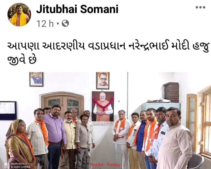 Read Moreવાંકાનેરમાં નરેન્દ્ર મોદીની તસ્વીર પર ફૂલહાર ચડાવીને ભાજપ કાર્યકરોએ વાયરલ કરેલ તસવીર હવે જીતુભાઇ સોમાણીના ફેસબ...